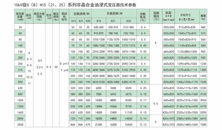 23GB/T25446 油浸式非品合金鐵心配電變壓器